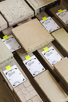 Neben klassischen Ausgangsstoffen wie Holz, Textilien und Lebensmitteln wurden auch selten genutzte Ressourcen verarbeitet. Nach ersten Tests entstanden vielversprechende Materialrezepturen, die in Kleinserien produziert und getestet wurden. Bereits nach einem Monat wurde der erste Biofabrique Vienna Ziegel präsentiert – hergestellt aus Aushub vom U2/U5-Ausbau, also dem beim Tunnelbau entfernten Erdmaterial, und Biertreber, einem Nebenprodukt der Bierherstellung.
